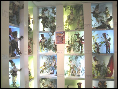 So I went to the Christmas store, Kris Kringl. There I found every conceivable collectible: fairies and sugar plums, gingerbread houses, elves, Snow Babies and Santa Clauses. There were hand blown glass ornaments and carved wooden ones, fabric elves and crystal icicles. There was vintage Christmas with Lucia brides and 1950’s diner scenes.